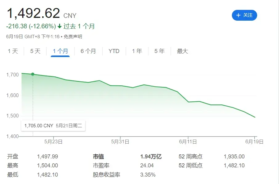 自打进入5月中下旬以来,以飞天茅台为首的茅台酒,市场交易价一路走低。