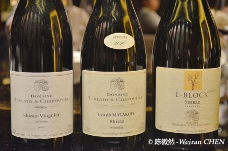 压轴的一款是来自Domaine TerlatoChapoutier 家的 L-block 2009,得名于一块L型的葡萄田。同样是100% Shiraz ,却只有6,000瓶的小产量。香气更加深邃,从最开始的少许胡椒味,知道浓郁的红色,黑色浆果香,还带着少许甜香料的味道。口感更加柔和以及平衡,单宁也少了许多年轻时的乖戾。虽然陈年之后也许香气会更加复杂,但如今喝起来,已经非常不错了! 每次天才酿酒师Michel Chapoutier跟别人的合作都有着非常有意思的故事和实力不凡的酒款,比如在阿尔萨斯的酒庄就是几个好兄弟在当地喝酒时迸发出的灵感。和Terlato的合作也是源于Anthony Terlato对酒庄的一次访问,离开酒庄回到美国的Anthony一直对那时年仅25岁的Michel赞不绝口,并且在酒庄最艰难的时候出手相助。两人的在澳洲合作由1998年开始,从葡萄的种植开始,直到2004年才出产了第一瓶Domaine TerlatoChapoutier 。近些年来,他在法国南部,澳大利亚,葡萄牙,美国都开展了不同的酒庄项目,跟著名的米其林三星主厨Madame Pic也有了在罗讷河谷产区的合作。也期待这位老顽童推出更多的更有意思的实力酒庄,保持一颗永远不老,爱玩儿的心!