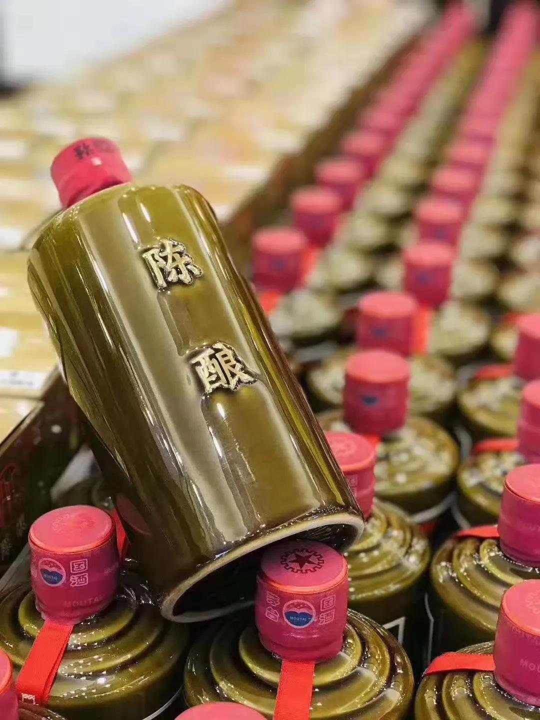 “陈酿”指的是具有陈年茅台酒的品质,用陈年窖藏的基酒勾兑而成的精品茅台酒,背面的金色的字更抢眼。