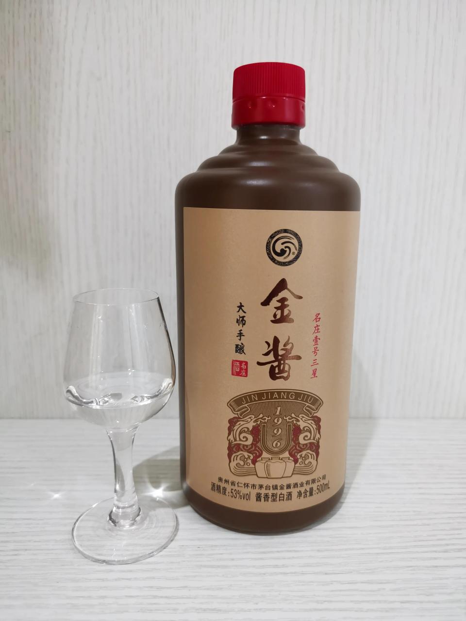 最早知道金酱酒,还是从本地一家很大规模的连锁酒行,当时他们从茅台镇的金酱酒厂定制开发了两款酒(目前开发了不少),那个时候只认大厂嫡系的我对这种酒没有兴趣,只是在店员的推荐下闻了闻它们的瓶口香,闻的第一瓶酱香纯正,当我闻罢第二瓶的时候,香气居然追着我的鼻子而来,出现了喷香的情况。当时我没买,但是喷香的感觉令我久久难忘。我手头的这瓶金酱·名庄壹号三星,是百老泉酒业在金酱酒厂的开发产品。话不多说,直接品鉴。