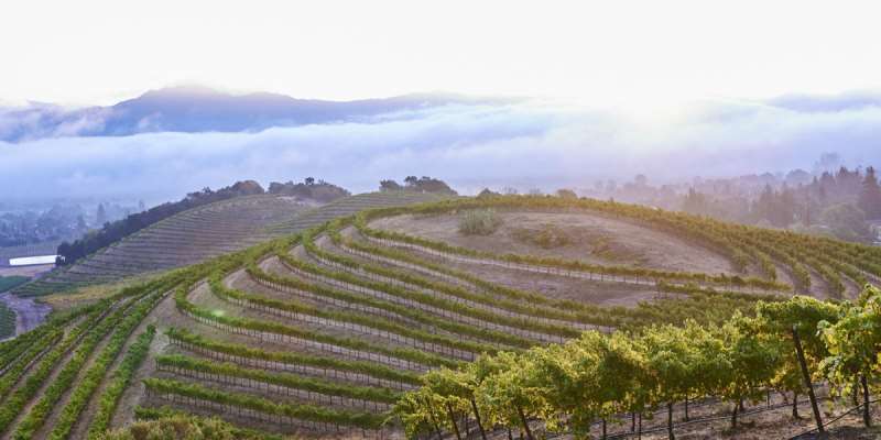 圣让酒庄始建于1973年,与其称其为酒庄,不如说是个花园更能体现其特色。这座酒庄里的城堡是在1920年由欧内斯特戈夫和莫德戈夫(Ernest and Maude Goff)夫妇建立,是他们一家人的避暑庄园。1973年圣让酒庄成立后,通过了一项保护戈夫夫妇文化遗产的决议,城堡因而得到重新修葺并对公众开放,并从此列入全美历史遗址保护区之一。 5、卡内罗斯酒庄(Domaine Carneros)