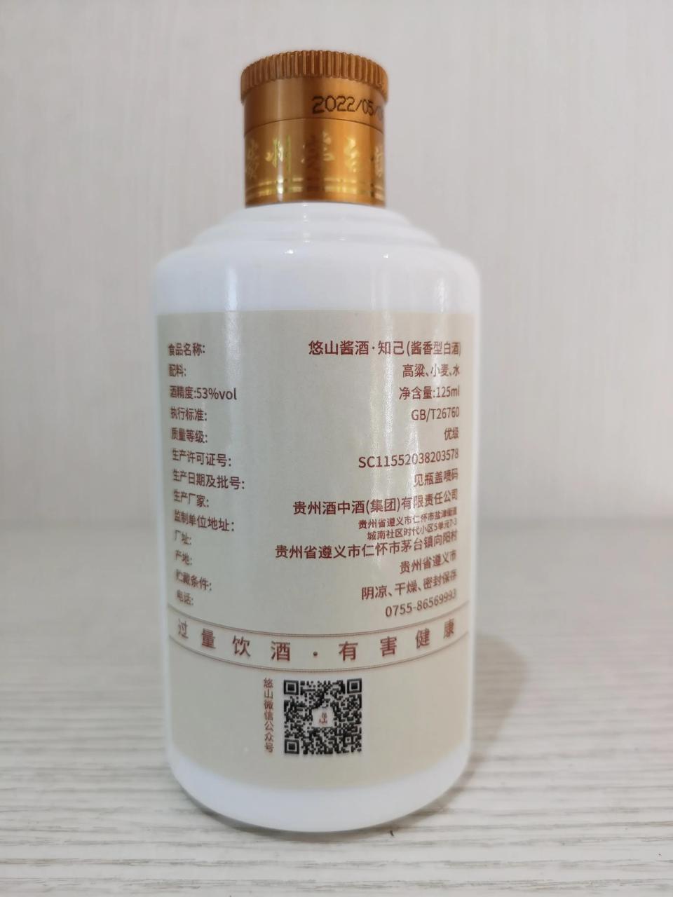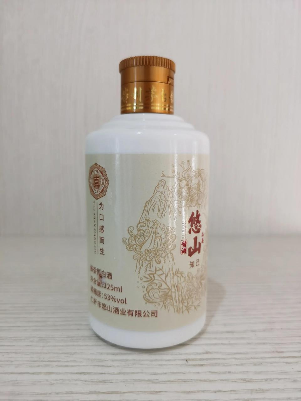悠山知己,悠山的入门级酱酒,茅台镇酒中酒出品,酱香国标优级。本人测评的是悠山官方直播间拍的小酒版,生产日期2022.5.6,53%vol,125ml,入手价35,换算成500ml装是140。话不多说,直接品鉴。