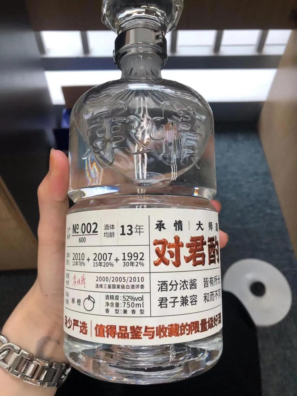 总体来说,承情对君酌是款非常不错的兼香,最突出的特点是浓酱协调,无论闻香还是口感,浓香与酱香相互交织,没法说是浓兼酱还是酱兼浓。酒体也非常丰满醇厚,据说是用12年的老酒做基酒,30年的老酒做的调味酒。当然,香气的馥郁感、酒体的细腻感还有一定提升空间,但总体还是很不错的。