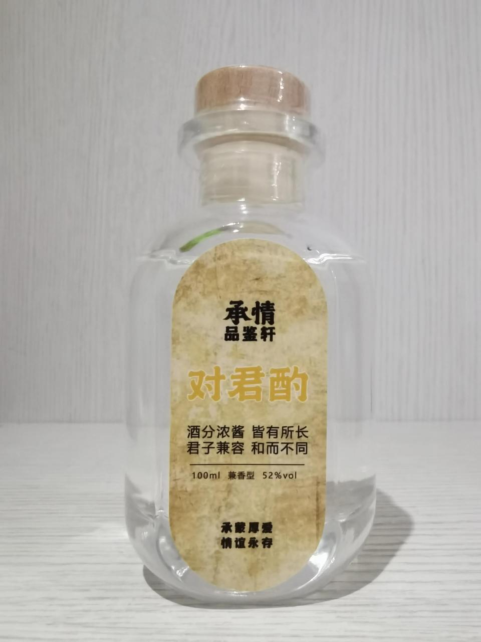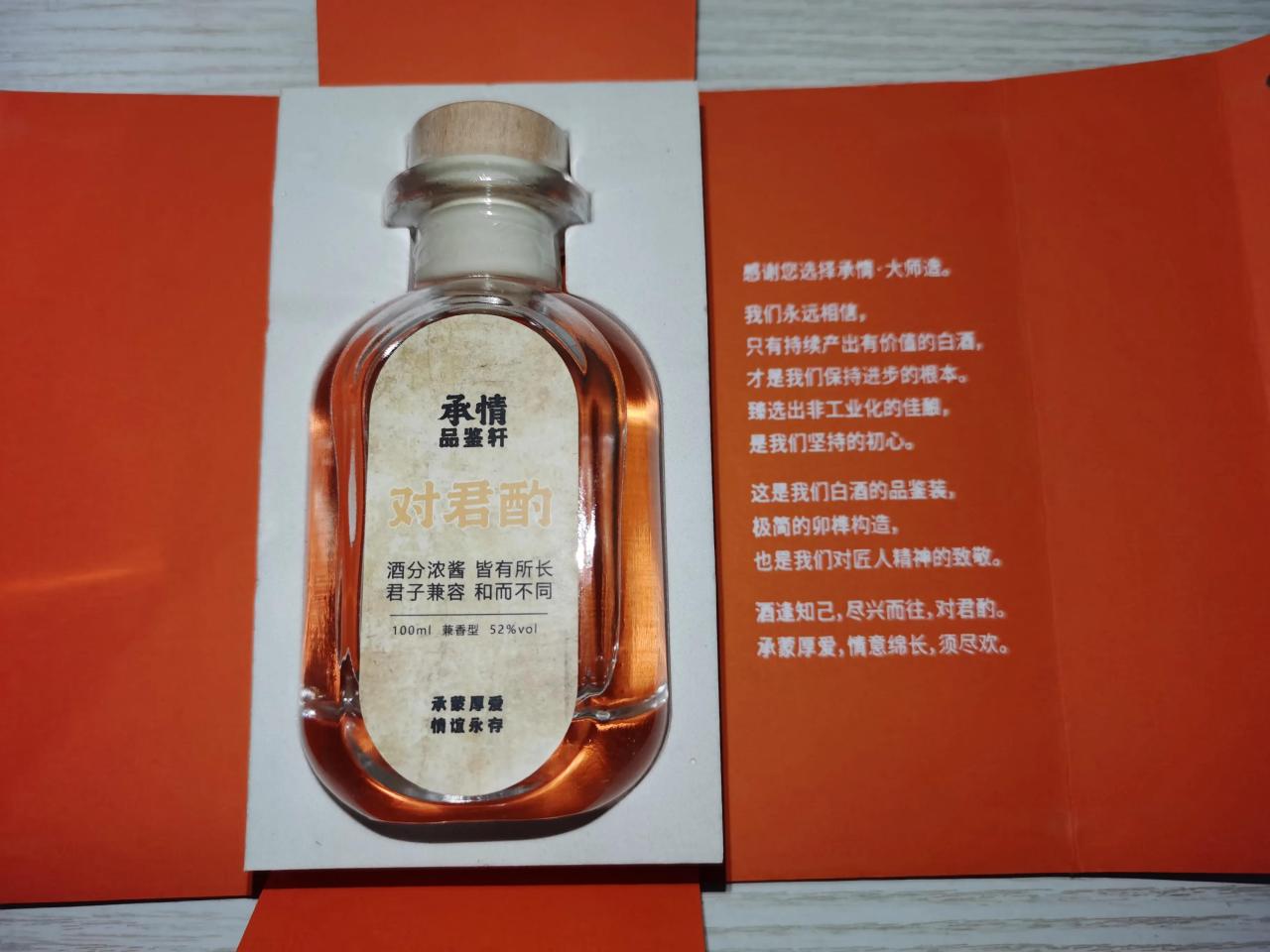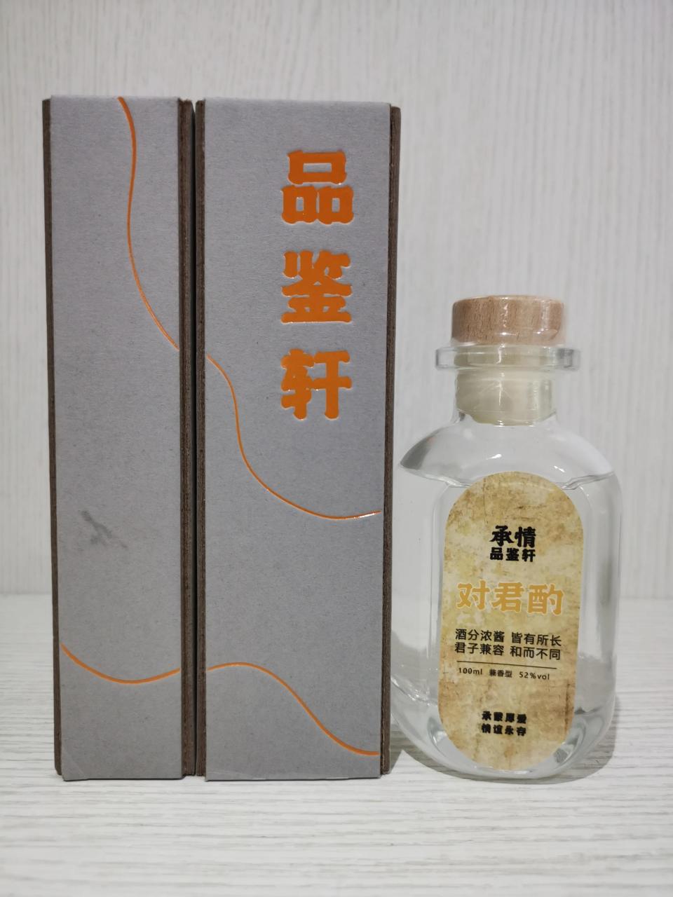 承情对君酌,湖南产的兼香型白酒,我手里的这款是品鉴轩小酒,52%vol,100ml,正装是750ml,话不多说,直接品鉴。