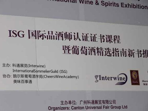 ISG国际品酒师认证证书课程推介会 主办:广州科通展览有限公司,International Sommelier Guild(ISG) 协办:鹊尔斯葡萄酒学苑(Cheers Wine Academy) 活动内容: 1、ISG国际品酒师协会总部人士于现场介绍ISG品酒师认证证书课程及阐述ISG在中国的发展规划。 2、鹊尔斯葡萄酒学苑报告各城市开班合作伙伴之条件及办法。 时间:11月28日(四)下午 3:30-4:30 地点:中国进出口商品交易会展览B区9.1馆A003a