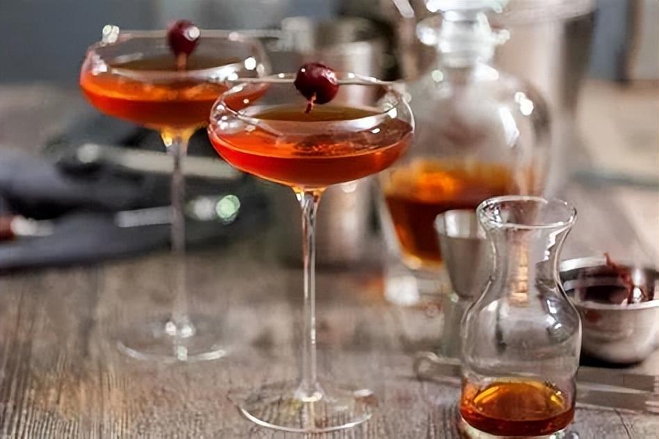 被称为「调酒女王」的曼哈顿(Manhattan),威士忌和甜苦艾酒的融合,让口感和香气相当的丰富。材料一样是那么的简单,做好却不容易,曼哈顿也被认为是可以展现调酒师功力与创意的调酒。