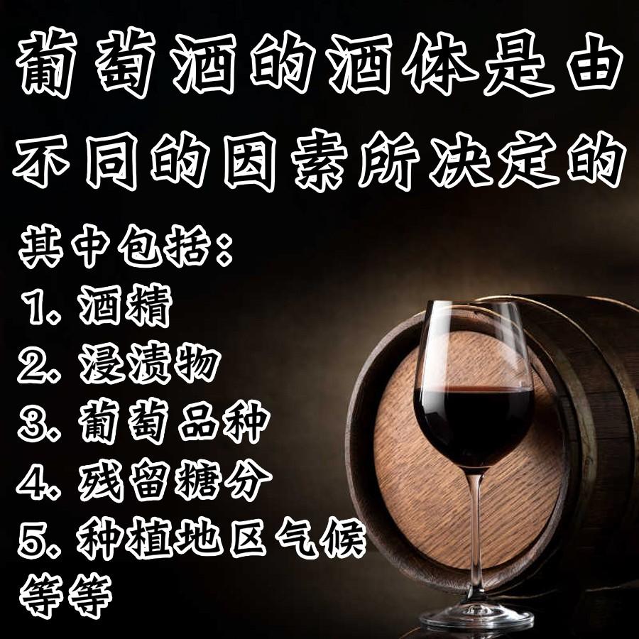 酒体是指:葡萄酒带给口腔一种或轻或重或淡或稠的感觉,主要由舌头感知葡萄酒在舌头上的“重量”和“质量”。举个例子,酒体重的酒液通常比较浓稠,而酒体轻的则比较稀薄。