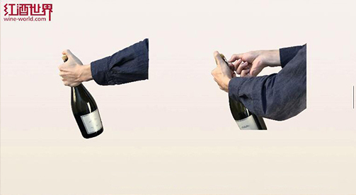 第3步 在一切准备就绪之后,把瓶塞上的铁丝罩打开。不要过早把铁丝罩撕开,不然木塞可能会自己弹出来。