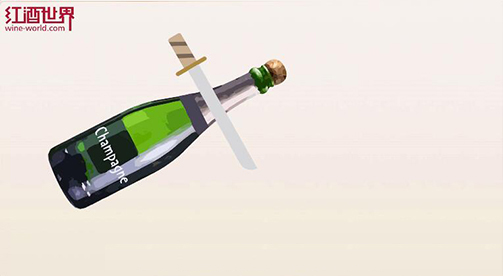 其实,只要方法得当,用军刀来开一瓶起泡酒是不会有问题的。在起泡酒的瓶口和瓶颈交接处,有一个环型凸起,对准这个位置迅速施加外部压力,就能迫使它和瓶颈分离;而且在较大冲力的作用下,玻璃碎片会直飞出去,不会进入酒液中。
