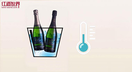 第2步 先把酒瓶冰冻好,然后直立放置一会儿。温度较高的酒瓶虽然比较容易用军刀来开,但是打开的那一刹那酒液更容易喷涌四射。用军刀开瓶的最高境界就是不要让它的酒液喷涌出来。