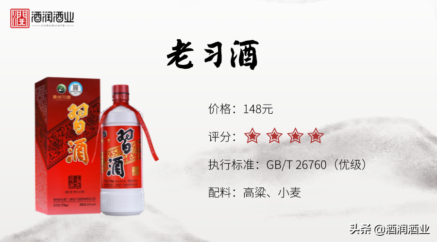 来自网友的评价:入口很清秀,或者说很柔和。酱味有,回味浓,酒体轻盈,爆口腔,纯正无杂味,有点尖尖的辣,好像一条线。有鲜爽的感觉,连续回香,有焦香,习酒确实不错。