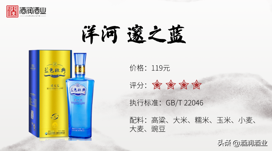 我们熟知的洋河,一般都知道海之蓝、梦之蓝,这款洋河大曲蓝瓷经常被人们遗忘,但性价比来说这款酒真的是非常不错了,往往活动期间80左右就能到手。口感有着洋河典型的绵柔清爽,入口绵长而尾净。