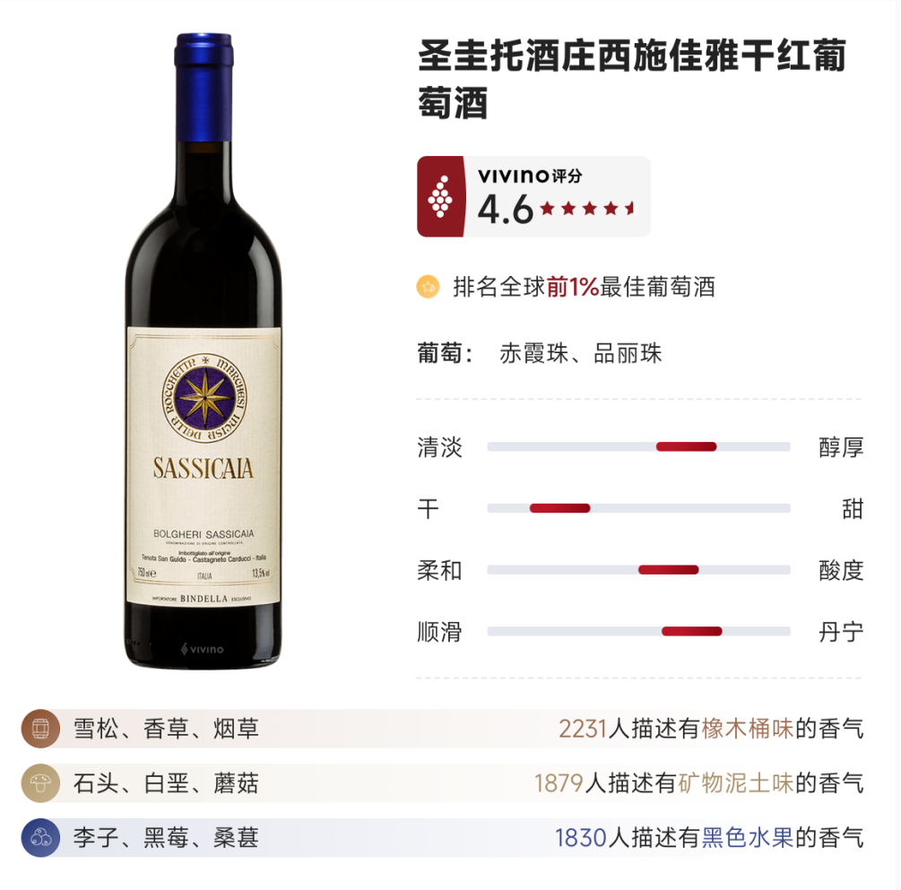 这款酒酒体饱满,带有雪松、紫罗兰及香料等别样风味,单宁紧密,余味悠长,陈年潜力优秀。
