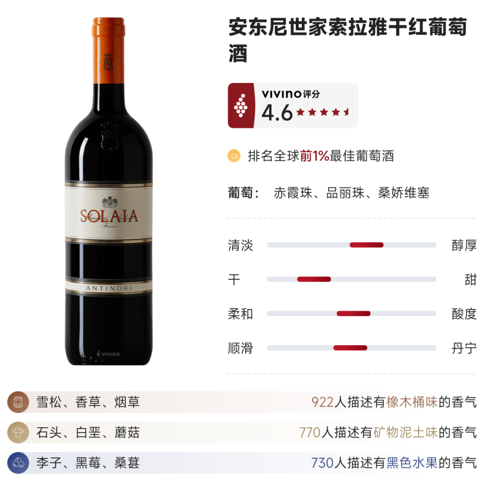 索拉雅是由意大利葡萄酒家族中的领头羊——安东尼世家出品的一款超级托斯卡纳葡萄酒。