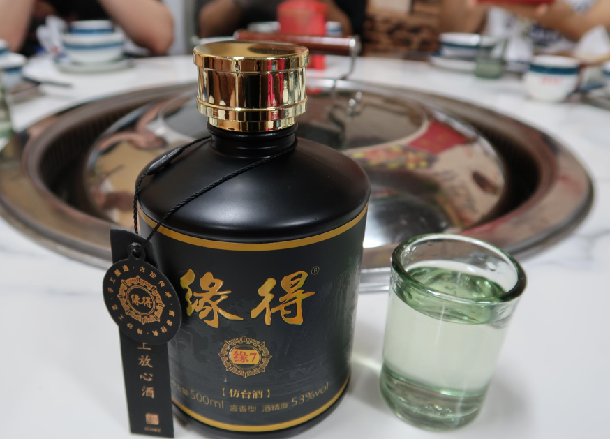 下面说的是一个产自“茅台镇”的好酒——“缘得仿台酒”。这款酒是作者在聚会上偶然喝的,酱香型白酒。
