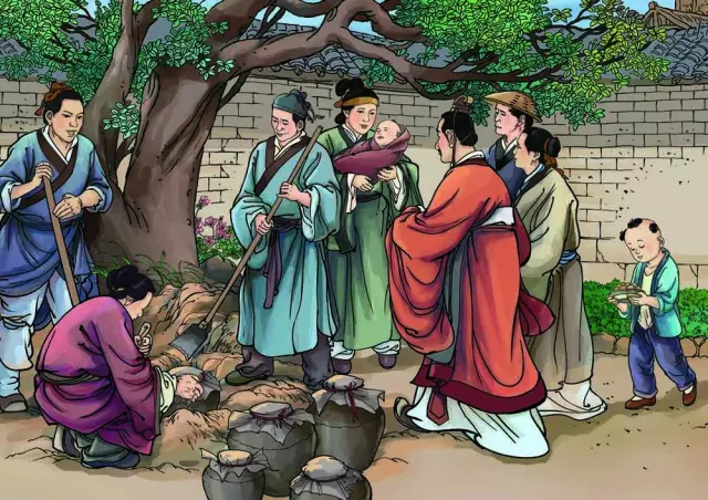 古时绍兴人有孩子出生,家人就要酿上数坛上好的老酒,这酒生女孩就叫女儿酒,生男孩就叫状元红,请师傅在酒坛上画上“花好月圆”、“吉祥如意”等文字图案,然后泥封窖藏,待儿女长大成婚之日,拿出来款待宾客。