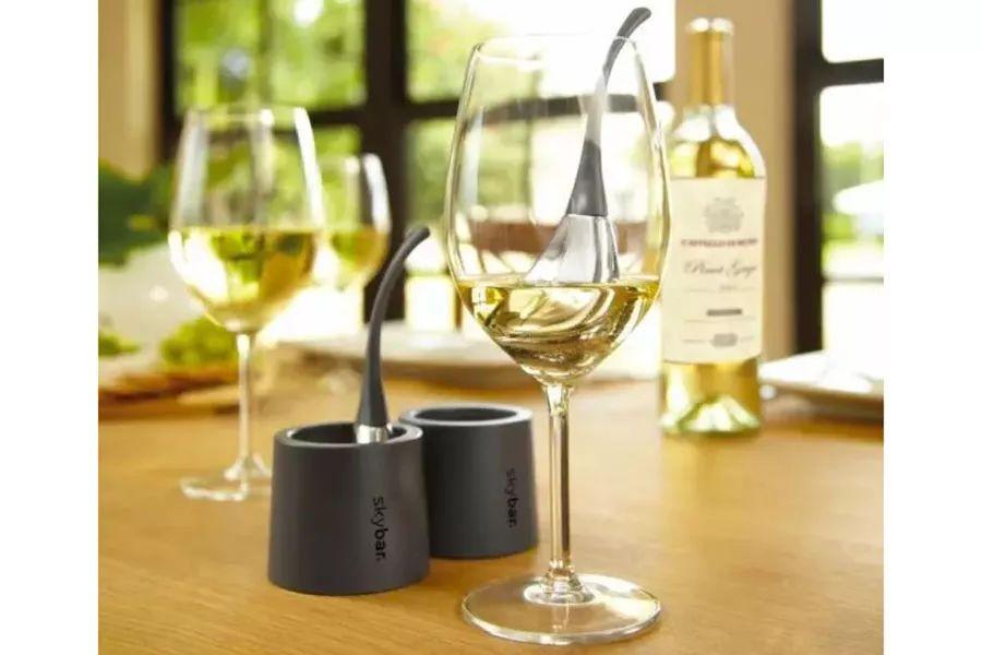 酒杖的外形像勺子,将酒杖放入酒杯中,酒可以让白葡萄酒快速降温。