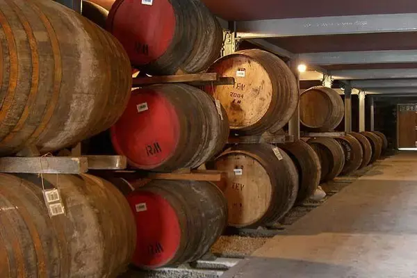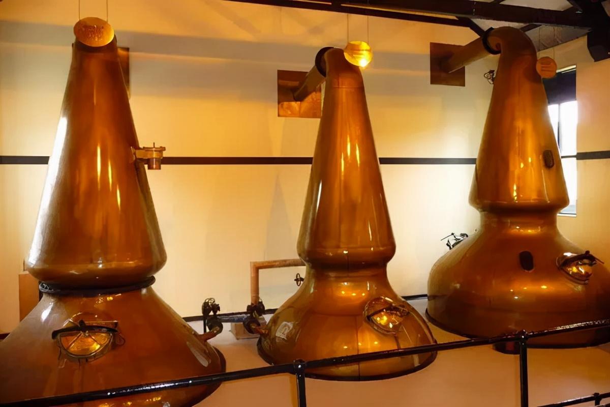 蒸馏具有浓缩的作用,麦芽威士忌主要用壶形铜质蒸馏器来生产,壶形蒸馏器由三部分组成:罐体(加热发酵麦芽汁的部位)、鹅颈和导管(被蒸发的酒精的上升管道)和冷凝器(回形管或套管,酒精蒸汽冷凝回到液体的部位)。铜质蒸馏器在蒸馏过程中,与酒液能发生反应,去除酒液中的不良物质和风味,使酒体变得更加纯净。蒸馏分 2 次蒸馏。第一次蒸馏主要是将酒精与水分离开来,蒸馏出来的酒酒精度较低,酒精含量约为 21%-28%,其杂质含量高。第二次蒸馏主要是将可饮性酒精与不需要酒精分离开来,蒸馏出来的酒主要分为酒头(不需要的味道和醇类组成)、酒心(纯净的酒精,后面酿成威士忌)和酒尾(不纯的酒精)。最后酿造成威士忌的酒精主要是酒心,也被称之为新酒。酒心大概占整个蒸馏酒精成分的 20%-30%,酒精度大约为 70%。(5)陈年蒸馏过后的新酒必须在橡木桶中陈酿 3 年以上,增加复杂的风味,同时产生漂亮的琥珀色,橡木桶的陈年决定了威士忌 60% 的味道。陈酿威士忌的橡木桶都为旧桶,通常为西班牙雪利桶,后来雪利桶供不应求,很多威士忌酒商采用美国波本威士忌白橡木桶。白橡木桶相比雪利桶价格便宜,但赋予威士忌的风味不如雪利桶。威士忌大多采用旧桶陈酿,而非新橡木桶,主要是因为新橡木桶的强烈气味会掩盖麦芽的香气,同时浓郁的单宁也会掩盖威士忌的口感。