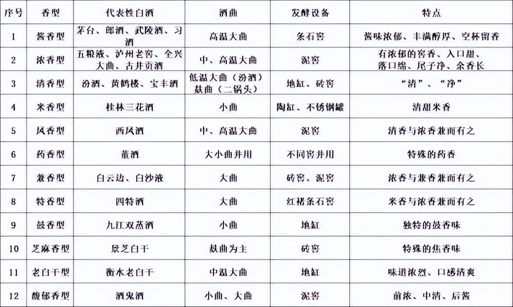 上面的一张图中,充分体现出12种香型白酒之间的相互关系,下面再放一张图,分别是12种香型的代表品牌和风格特点,两张图收藏起来,基本上白酒型就全看懂了。