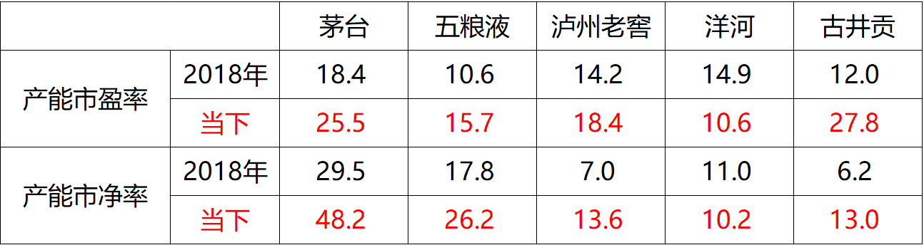 按产能市净率来看,茅台五粮液泸州老窖古井贡洋河,这是市场对品牌溢价的认知。