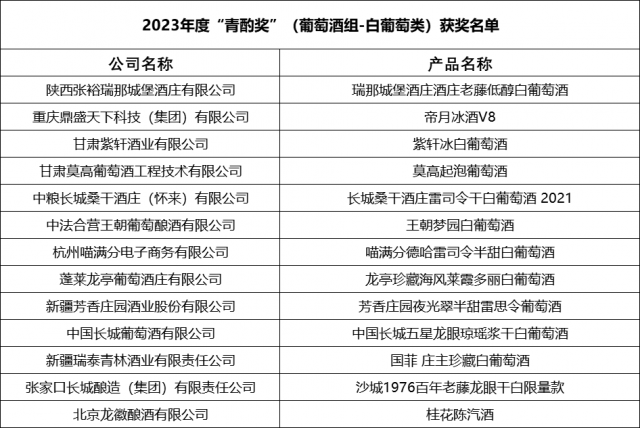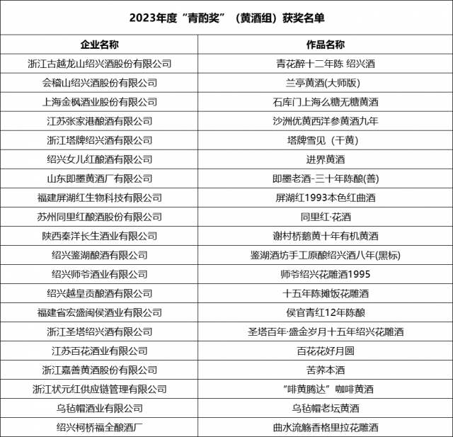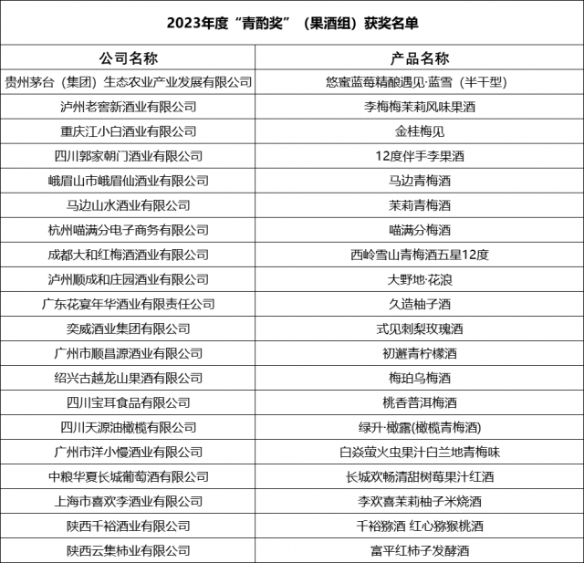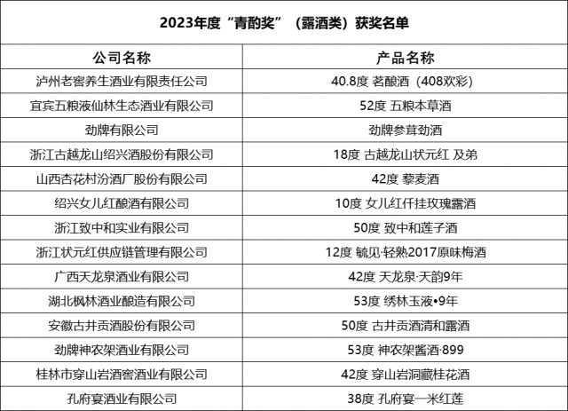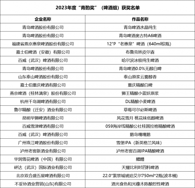 2023年“青酌奖”酒类新品评选获奖名单