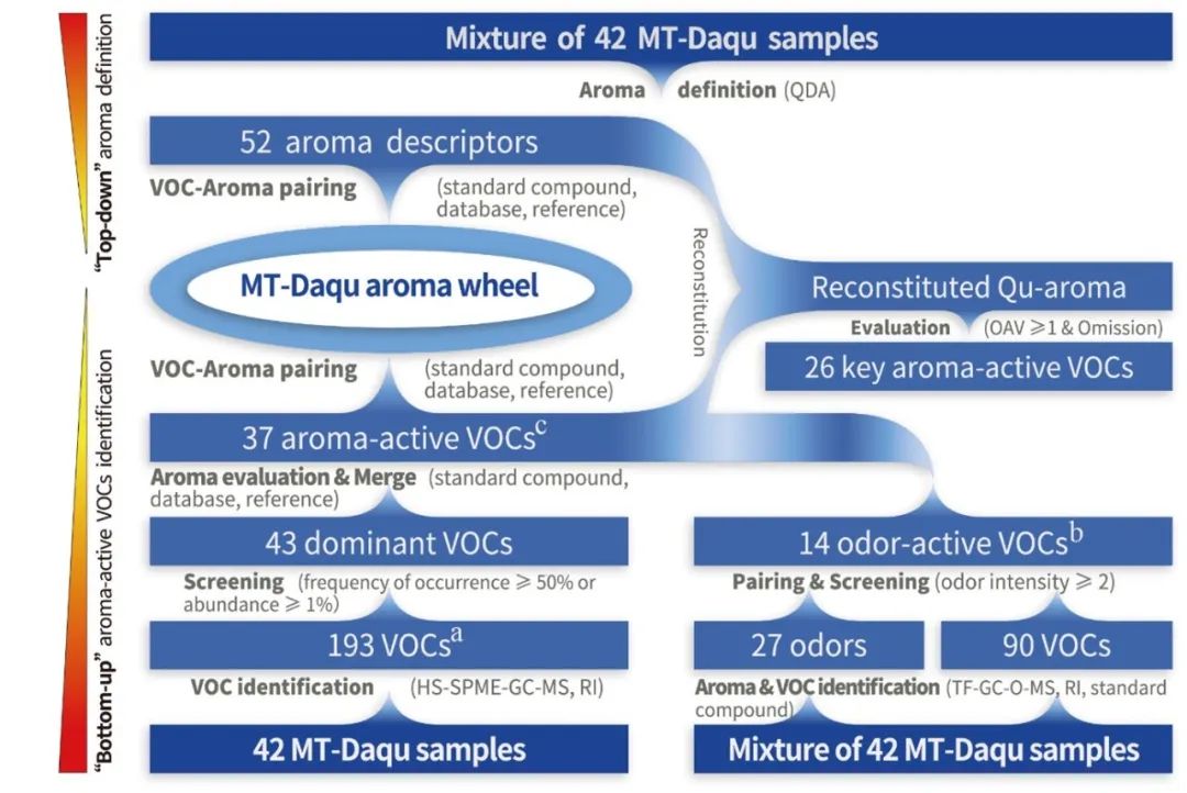 1. “自上而下”和“自下而上”相结合,构建了曲香风味研究策略
