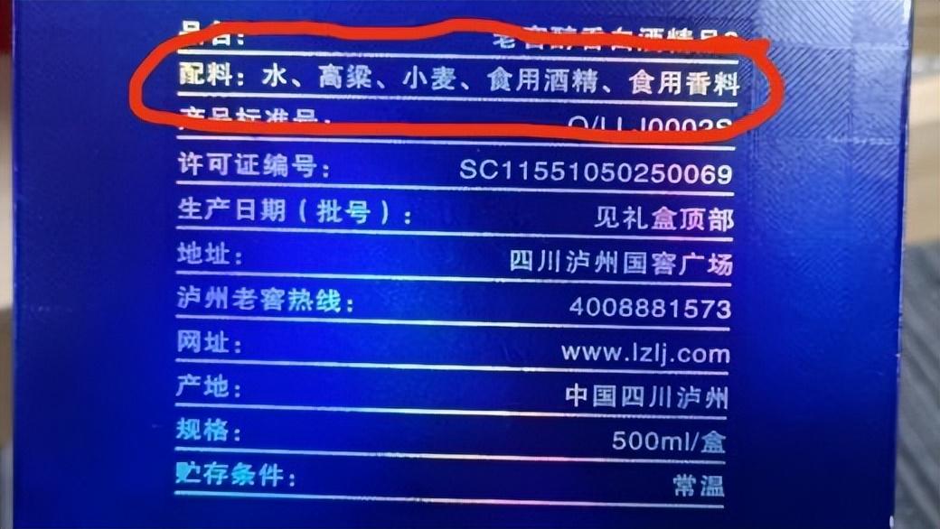 ④看配料成分在确定是正规酒厂产品的前提下,反过来看一眼配料中所含成分,有没有食用酒精和添加剂等,除了粮食和水之外的成分。