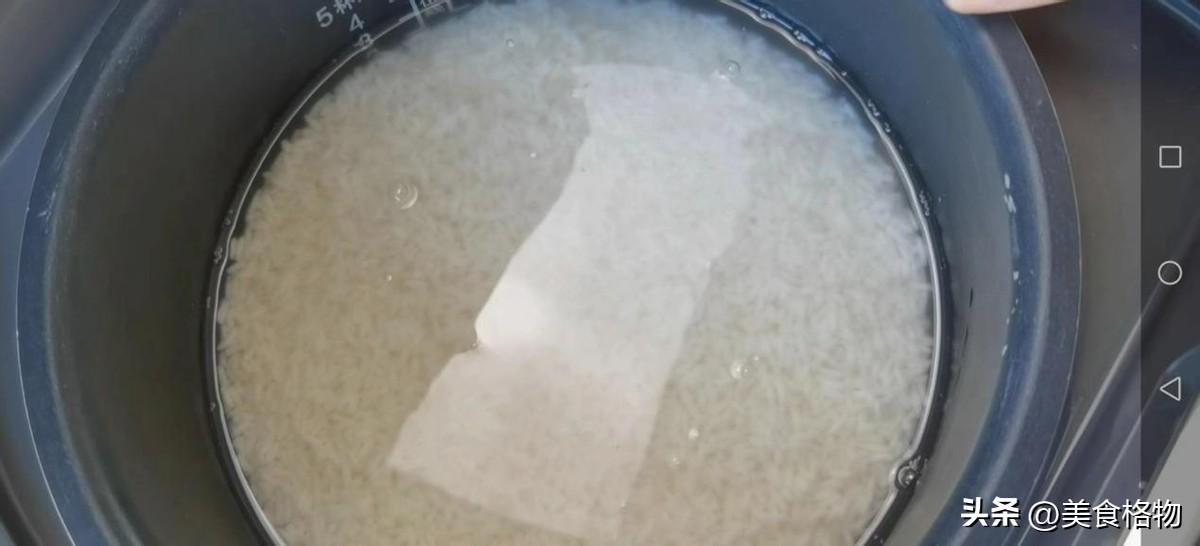 之后我们把水倒掉,换上干净的清水泡米,如果您是头一天晚上泡,记得一定要放到冰箱中,现在天气越来越热了,防止把糯米泡到发酸变质,这样的话就没有办法使用了。泡过一夜之后,这个米已经比明显的比之前胀大了很多,用指甲轻轻一掐,就可以把米掐断,到这样的状态,我们就可以使用了。