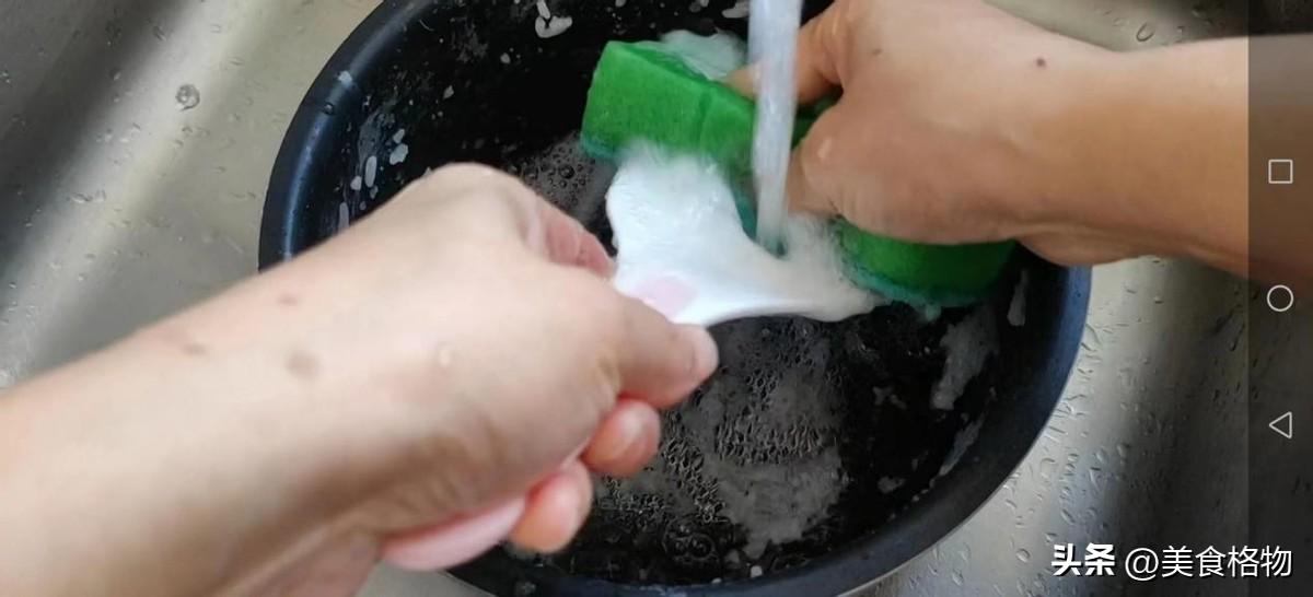 晾着糯米饭的时间,赶紧把家里这个电饭锅的内胆刷出来,这种糯米和大米不一样,它特别的粘,一旦变干之后就特别难刷。如果您担心不好刷的话,也可以提前用水将您泡上,这样在一会儿刷的时候就比较方便了。