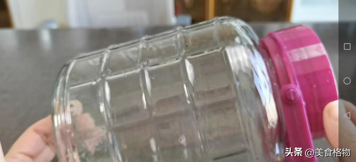 这边找一个玻璃罐子,这个罐子提前用高度白酒给它消一下毒,既可以保证里面没有过多的细菌,又可以让这个酒残留一些白酒的味儿,倒入一些高度白酒,盖上盖子之后,上下左右都给它摇晃个两三分钟,让每一个角落都可以沾染到白酒就可以了,摇晃之后,这个白酒是要倒出去的,不要留在罐子中,这样在使用过程中和酿酒的过程中就不会出现发霉变质、长白毛的现象。