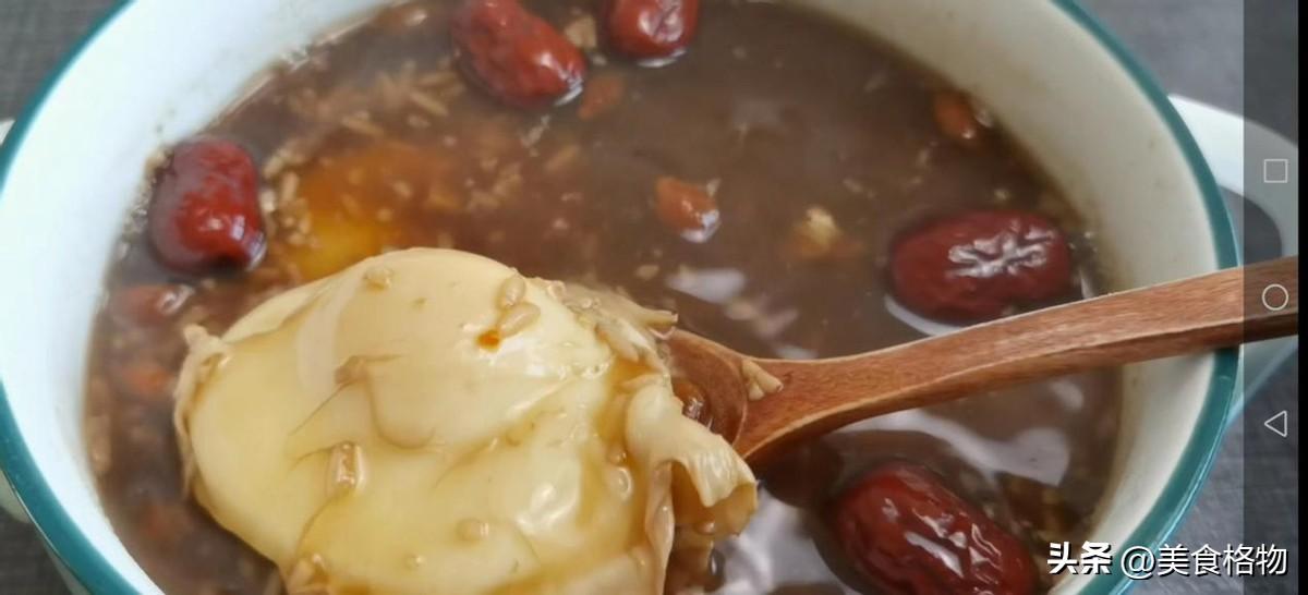 用我今天教你的这个方法,酿出的糯米酒特别清澈,酿好的糯米酒除了可以直接吃,其实我们还可以制作美食,准备了小锅子,往里面打入一些鸡蛋之后呢,放入一些红糖,红糖的量可以稍微多一点,这样口感更加适口。加入红糖之后,可以按照您自己的口味往里面加入一些食材,比如说红色的花生米、红枣、红枸杞、红豆,加入食材之后,往里面放上一些已经酿好的糯米酒,这种糯米酒在南方叫做甜酒酿,在北方叫做醪糟。