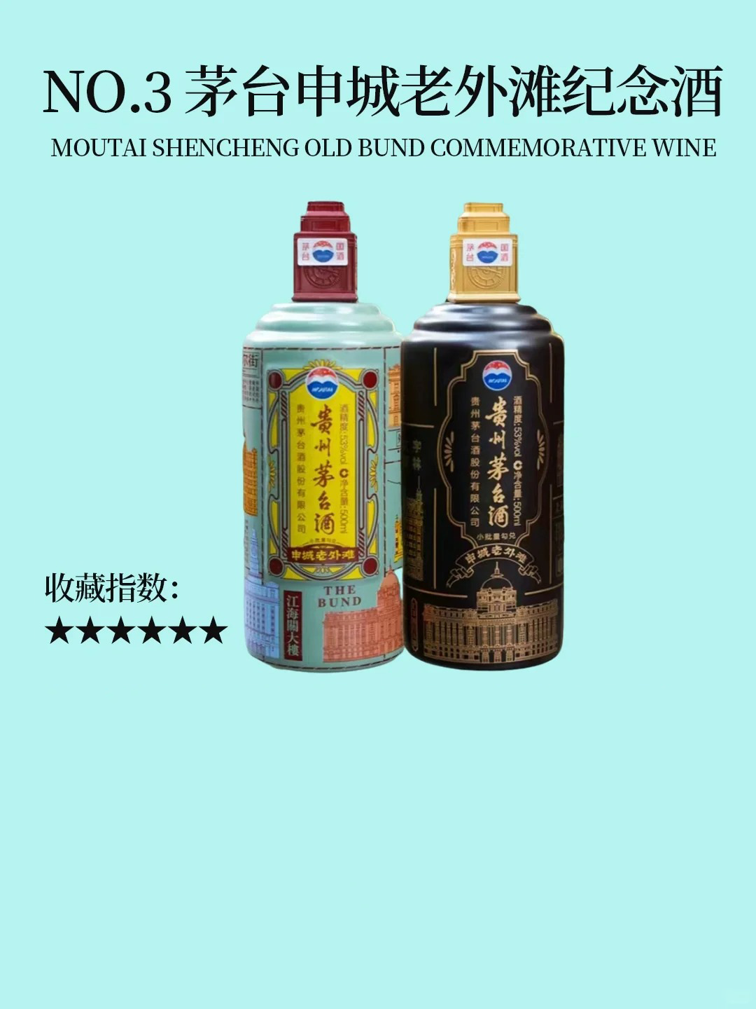 2015年生产的申城老外滩茅台酒,作为申城老外滩纪念酒,一套两瓶,深褐色与青色瓶身绘有上海外滩的标志性建筑,文化气息浓厚。自发售至今,价格已翻了十倍,未来增值潜力巨大,是历史文化爱好者和茅粉的理想收藏品。