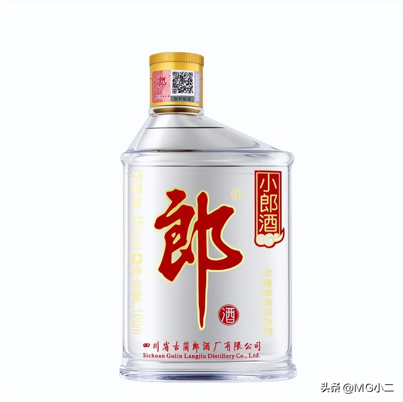 第三款:小郎酒,2016年是小郎酒进入市场的第十年,浓头酱尾、兼香和谐是该产品的卖点。100ml小郎酒的个性化设计与自由的消费方式相结合,合理的产品定位加上高执行力的“狼性”营销团队,引领了中国小酒消费新风尚。小郎酒精确的产品定位,一流的酒体设计,时尚而不失典雅韵味,兼香型口感的包容性,更是充分体现了“小郎酒,大品牌”的特点。