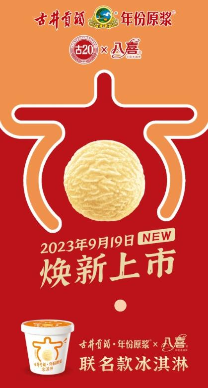 在酱香拿铁上线后没多久,古井贡酒·年份原浆就与八喜冰淇淋联名推出冰淇淋产品,它是以生牛乳和稀奶油为核心原料,每杯添加大于1.12克古井贡酒·年份原浆“古20”。古井贡酒与八喜冰淇淋的跨界联名,让各自知名度都有所上升,也让白酒联名更“卷”了。