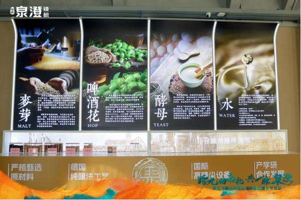 泉澄精酿品牌主打产品的全方位展示,精酿生产原料的现场直观展示,呈现出“真材实料”的纯酿法工艺迷人的魅力。