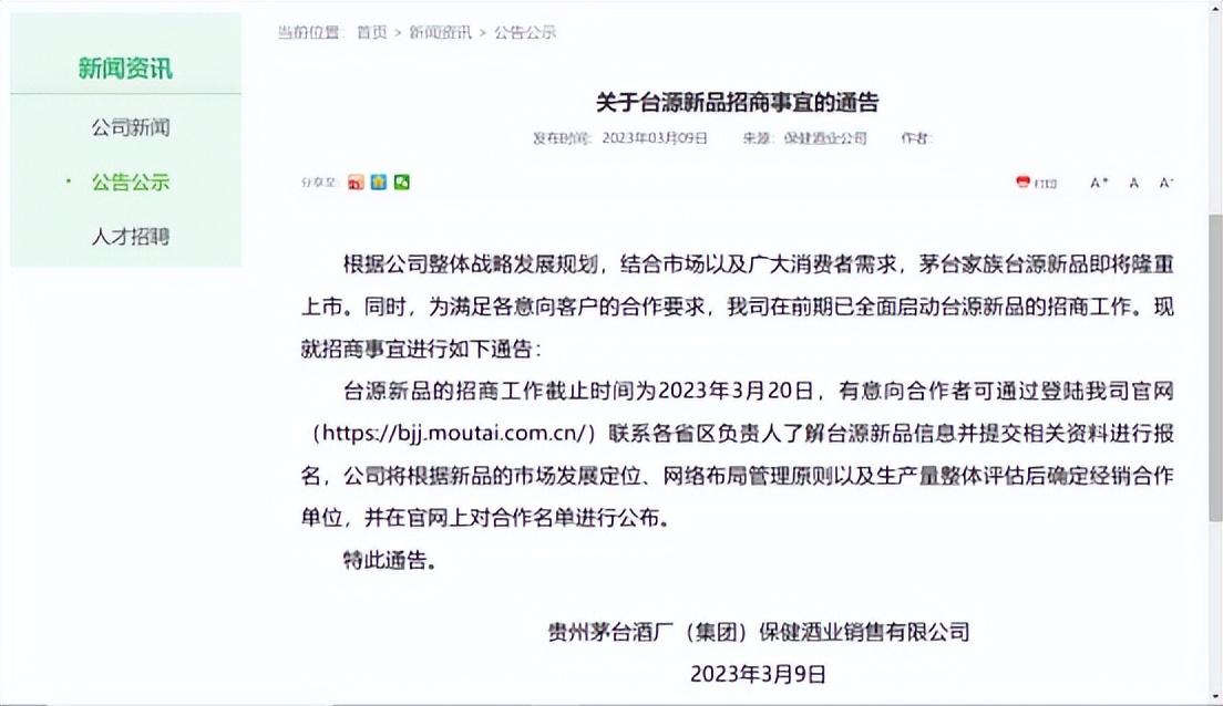 3月8日,茅台发布了新品台源酒的招商公告,正式将新品上市提上日程。在这个公告中,有一个很有意思的点:用于招商的时间只有22天。这个时间可不算长,市场考察,用户分析和价格反馈这些都需要经销商去考虑的。而茅台这次敢这么做,想必是信心十足了。
