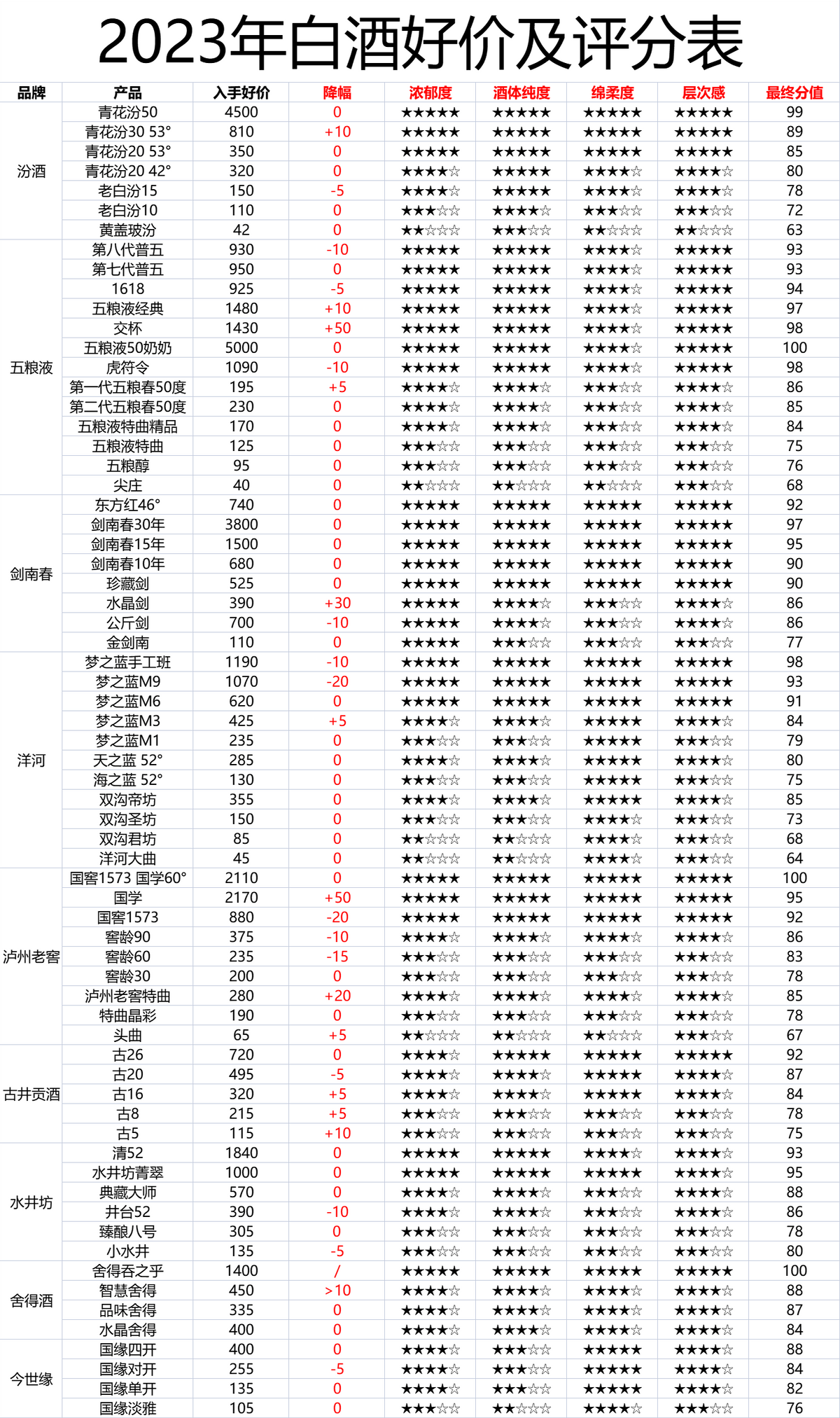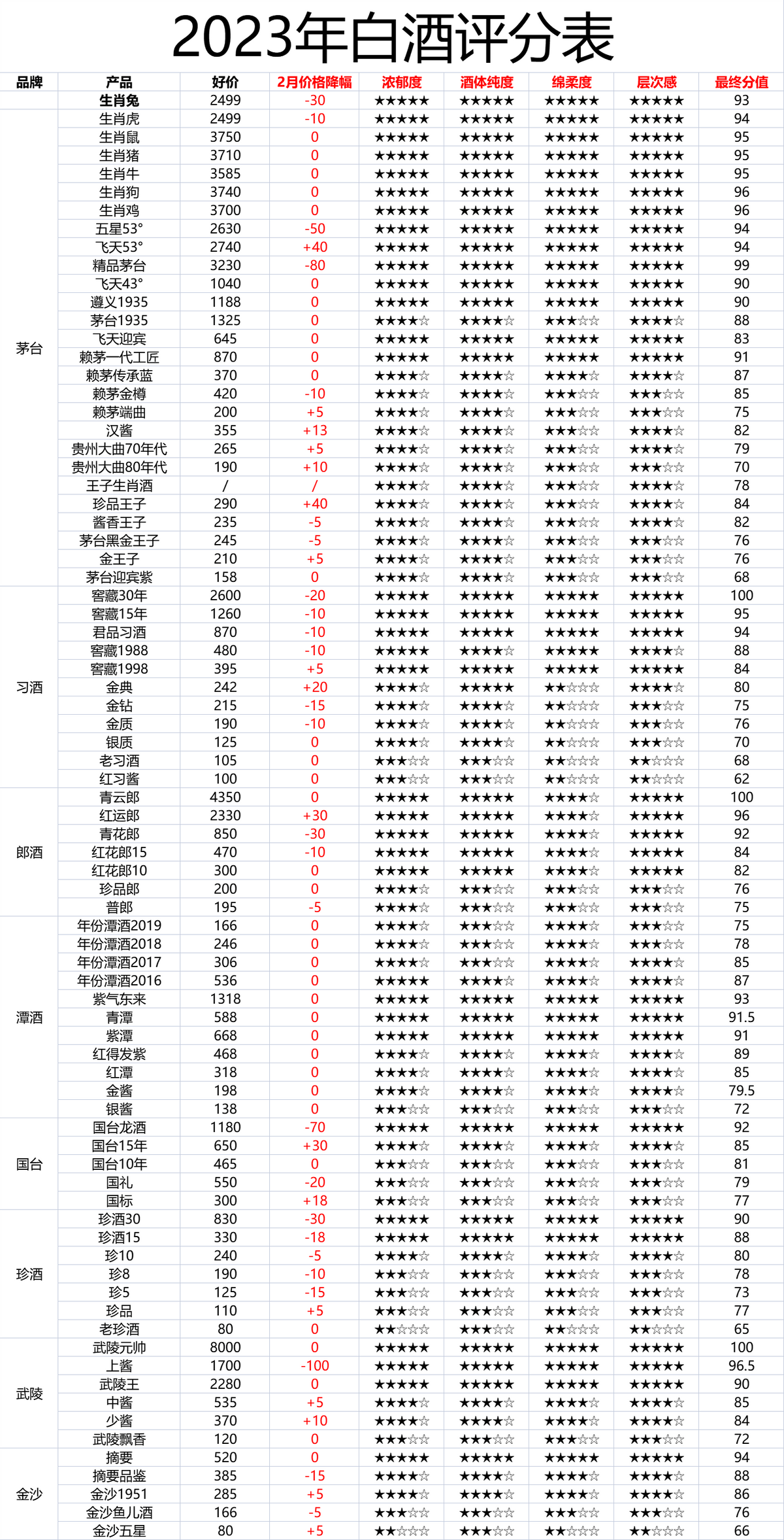 其实在业内,酒质是有参考标准的,专业品酒师一般都会从几个维度品评,我参照专业品酒师的指标,结合酒体纯度、浓郁度、层次感、绵柔度,给酒做了一个评分,供大家参考,这个评分只适用于自饮,不适用于宴请、送礼、投资等场景。