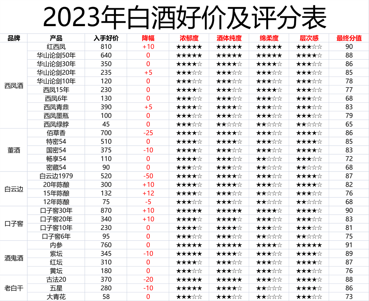 性价比代表酒:华山论剑系列、西凤15年、绿脖。