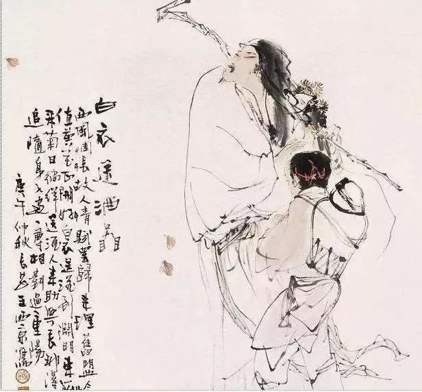 夏历九月九日,是中国的重阳节。九为阳数,月日相并,两九相逢,故为重九,或称重阳。登高远眺,饮酒赏菊,是重阳节的两大风俗,古已有之。不少文人墨客以此抒发胸怀,表达灵性,有不少脍炙人口的佳句,比如王维的“每逢佳节倍思亲”,杜甫的“重阳独酌杯中酒”。东晋文人陶渊明,嗜酒好饮,然家中贫穷,不能常得。一年重阳节,家中无酒,只好摘菊盈把,携至野外,侧置久坐,凝思远望。忽见一白衣而至,原是官府给役小吏,代表江州刺史王弘送酒来。大喜过望,立地尽醉而归。后来人们以“白衣送酒”表示雪中送炭,心想事成。陶渊明为我国古代著名田园诗人,一生诗酒融为一体,其酒醉后写的“饮酒二十首”,一醉一诗,仅择一首如下: