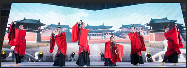 随着高雅的古风声乐,一首与唐代诗人王维诗作同名、并以此诗作曲的雅乐《渭城曲》,串联了一场汉代文化吟咏。此曲以大汉视角立意,以“劝君更尽一杯酒,西出阳关无故人”表达对张骞西行的惜别之情。