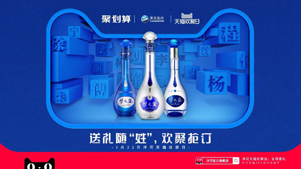 洞察精准的洋河,用百家姓吸引到了大批年轻消费者的关注,为天猫洋河欢聚日提前预热。