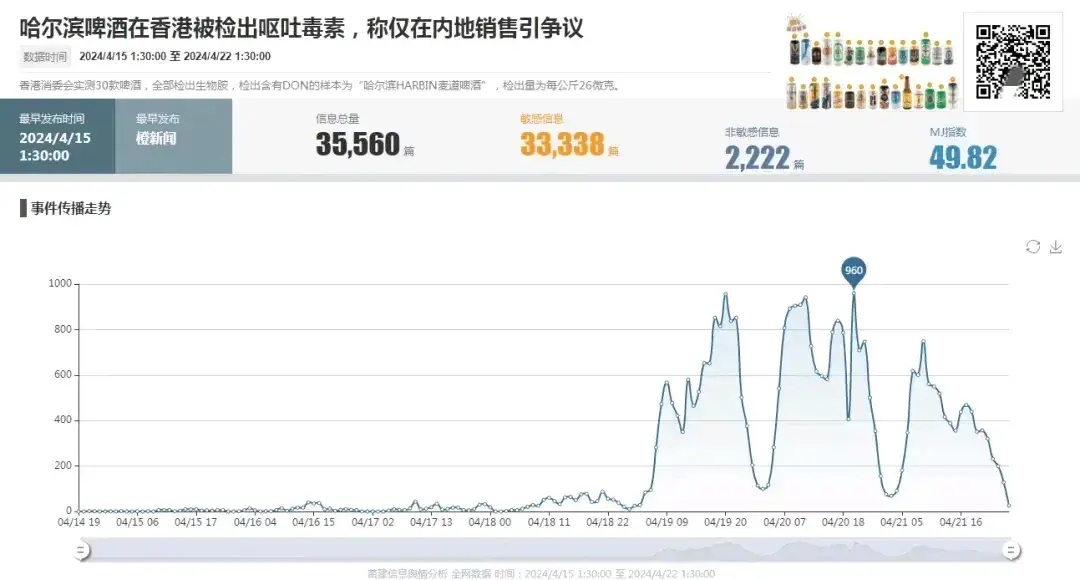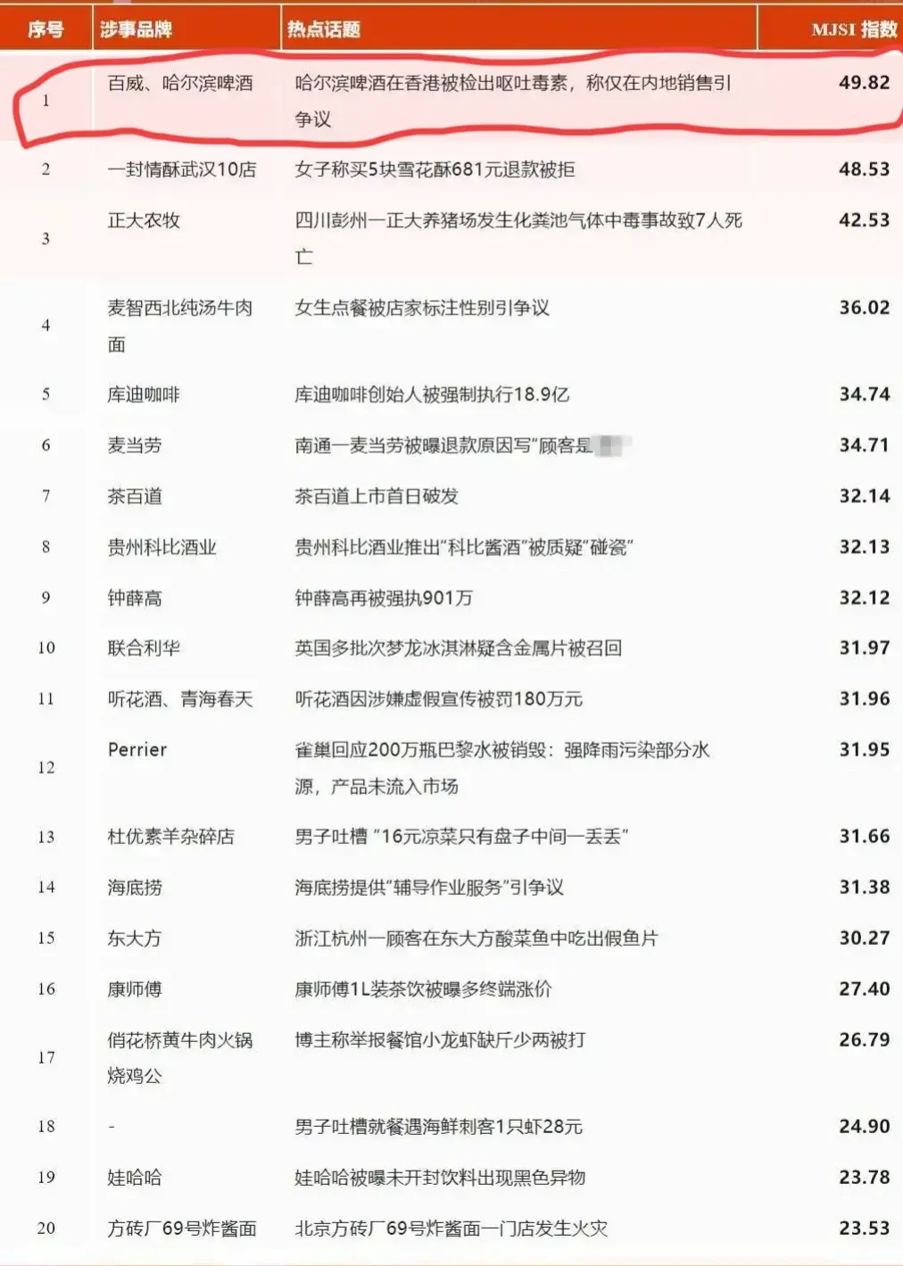 值得一提的是:2024年4月香港消委会《选择》月刊表示:测试了30款罐装或瓶装啤酒,其中哈尔滨麦道啤酒样本被检测出含有呕吐毒 素,即脱氧雪腐镰刀菌烯醇(Deoxynivalenol,又称DON)