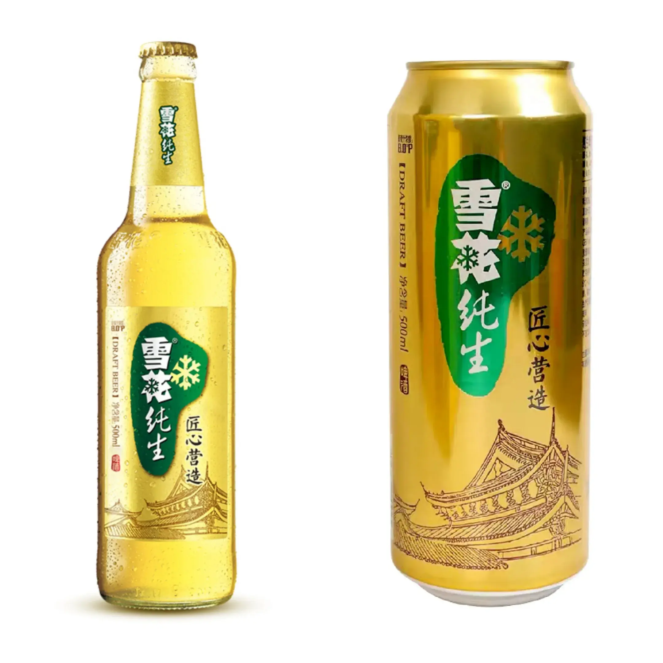 2008年,雪花啤酒推出全新品牌标识,采用中国独特的剪纸艺术风格,并将“雪花瓣”图案植入汉字“雪花”中。