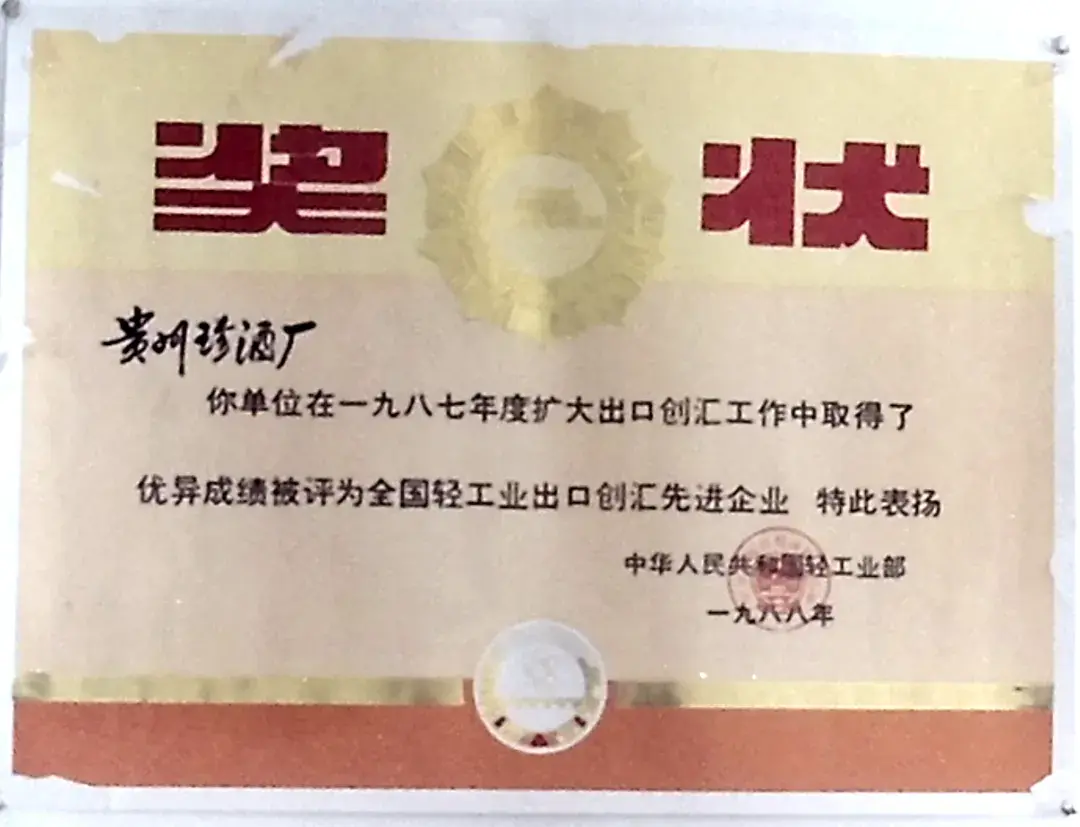 珍酒的品牌,历史上有厚度,当下有热度,其诞生拥有传奇历史,1988年的第五届全国名酒评比会上,荣获国家质量奖优质奖,成为“53国优”之一,与茅台、习酒并称为贵州三大酱香品牌。凭借优异的品质,还远销法国、德国等数十个国家和地区,被轻工业部授予“出口创汇先进企业”称号。