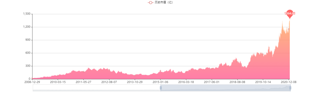 市值方面,古井贡酒从2009年初的20亿到2020年12月24日的1354.6亿,翻了67.7倍。可以说10年来的古井贡酒,给投资者交了一份满意的答卷。