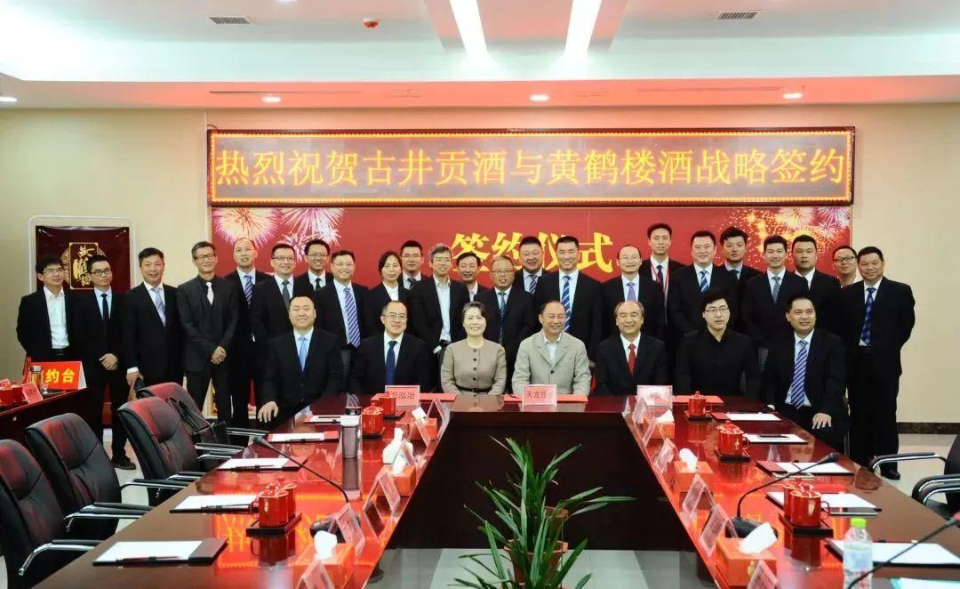 ▲ 古井贡酒与黄鹤楼酒的战略签约仪式