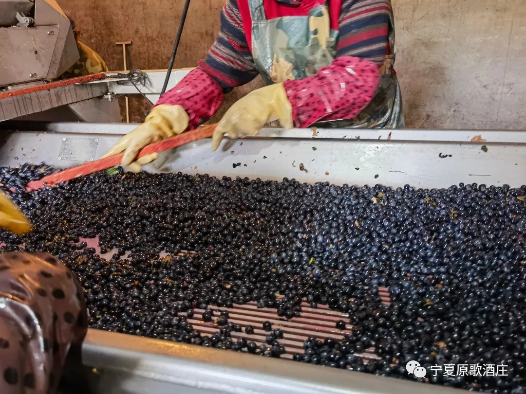 最值得一提的是,在这两个环节中,原歌酒庄的大家们为保证筛选精细度和速度,让入罐发酵的葡萄们可以是最新鲜的样子,选择团结一心齐上阵,攻克一年最难关。大伙们自发的连续一周起早贪黑,牺牲休息时间甚至工作到夜晚12点。小果也一样在这个过程中体会到了最真实的劳累与辛苦,但也在结束之际体会到了最真实的成就与快乐。而为了保证入罐葡萄得到最妥帖的管护,即将到来的国庆假期也依旧是酒庄最忙碌的时候。在此,小果真诚的向全体员工及采摘工人们道一句,谢谢大家,辛苦啦!