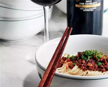 担担面。川菜中最家常的主食,搭配上此款酒体饱满丰厚的红酒,实在是有点淘气,不过这样的有趣好玩谁又会不乐意尝试呢?