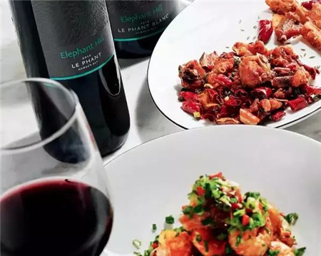 为2013年 Elephant Hill 白葡萄酒搭配的是重庆辣子鸡。辣子鸡也可以算是川菜中的一门小钢炮,火力猛烈,配合白葡萄酒的清冽甘甜,相得益彰。