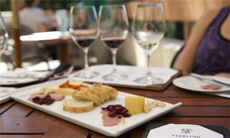 坐缆车我们来到山上史特林Sterling酒庄第一个品酒点。领了酒杯品尝了美味的葡萄酒。酒庄很大,上层是商店,2个拱形的建筑里面是古老的铜钟,每逢整点会自动鸣响。下层是第二个品酒点。品尝着美味的红酒还可以欣赏史特林Sterling酒庄全景,感觉非常棒! 来到酒庄的商店,有各式各样的美酒不同年份葡萄酒价目表。据说美国加州纳帕的葡萄酒在中国市场上买不到,一是价格高,二是美国市场供不应求,基本上买断了产自纳帕的葡萄酒。我们买了口感甜醇的史特林Sterling酒庄生产的玫瑰气泡葡萄酒,口感非常的好。 来到葡萄酒生产车间,整个车间不见一人,全是自动化流水线。许多窖藏的橡木桶葡萄酒。 这次旧金山旅游的纳帕谷行程中,最后我们来到第三个品酒点和史特林Sterling酒庄全景观赏平台,景色真是美极了。在这里品赏美酒,欣赏美景,共度周末,享受悠闲自在...... 结束了纳帕酒乡之旅,我们继续着接下来精彩的行程。